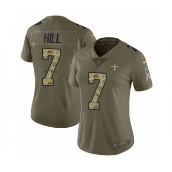 >Women's Nike New Orleans Saints #7 Taysom Hill Limited Olive Camo 2017 Salute to Service NFL Jersey
