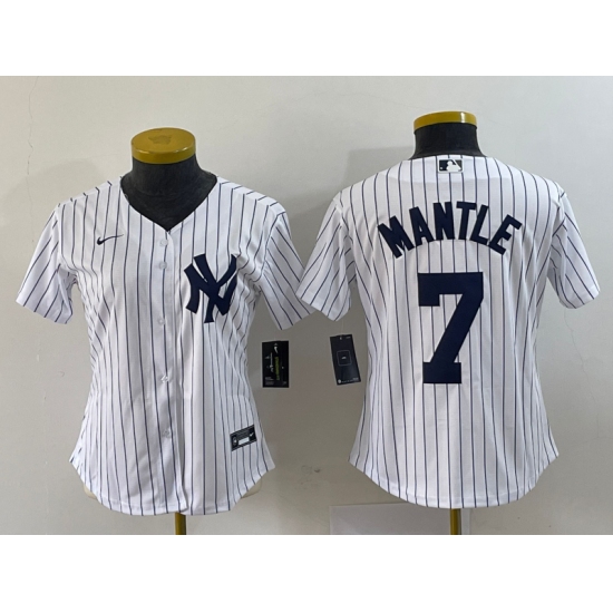 Women's Majestic New York Yankees #7 Mickey Mantle Replica White/Black Strip MLB Jersey
