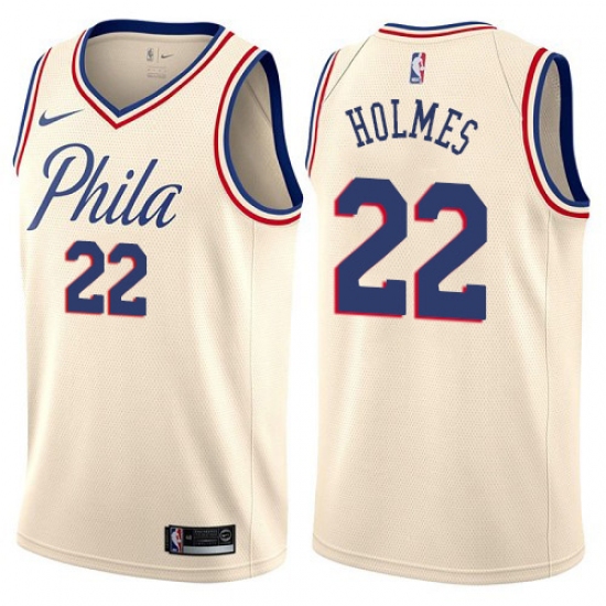 Home>NBA>Philadelphia 76ers>Richaun Holmes>Women's Nike Philadelphia 76ers #22 Richaun Holmes Swingman Cream NBA Jersey - City Edition