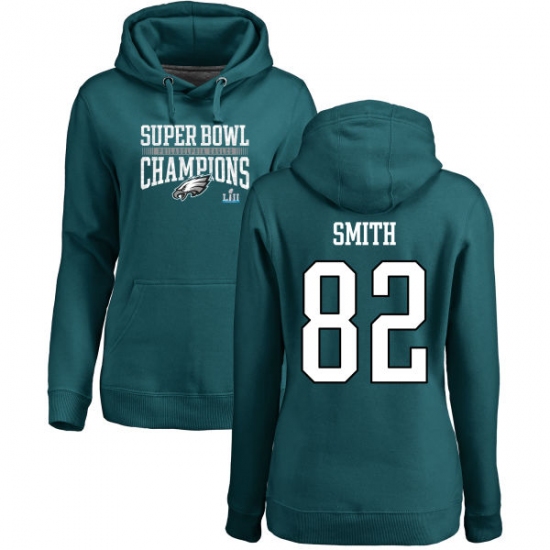Women's Nike Philadelphia Eagles #82 Torrey Smith Green Super Bowl LII Champions Pullover Hoodie