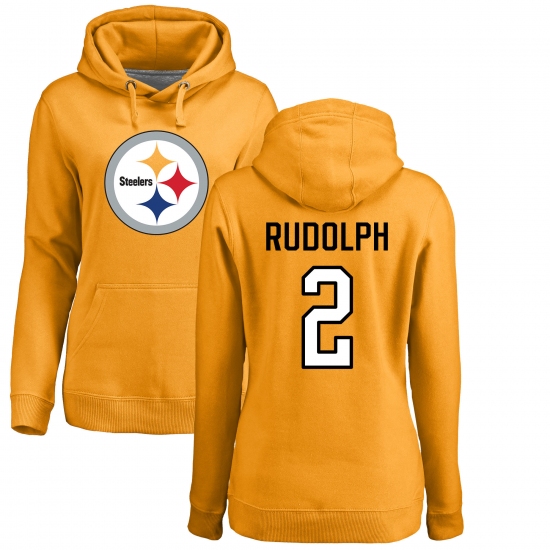 Women's Nike Pittsburgh Steelers #2 Mason Rudolph Gold Name & Number Logo Pullover Hoodie