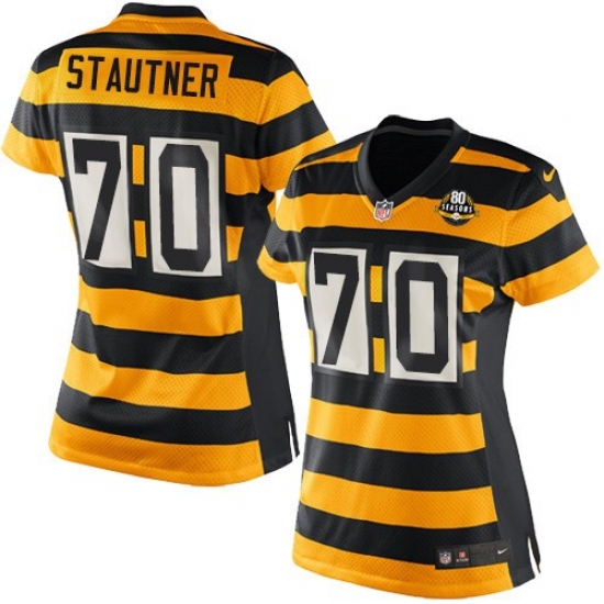 Home>NFL>Pittsburgh Steelers>Ernie Stautner>Women's Nike Pittsburgh Steelers #70 Ernie Stautner Limited Yellow/Black Alternate 80TH Anniversary Throwback NFL Jersey