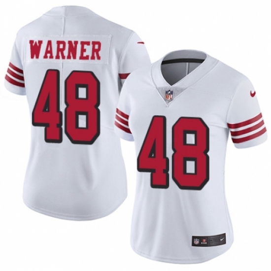 >Women's Nike San Francisco 49ers #48 Fred Warner Limited White Rush Vapor Untouchable NFL Jersey