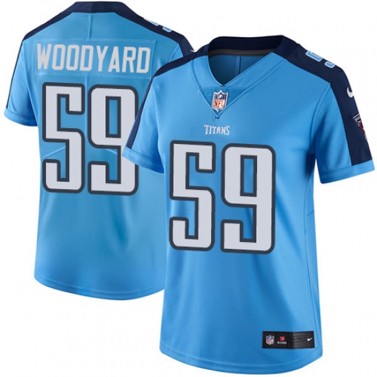 Women's Nike Tennessee Titans #59 Wesley Woodyard Limited Light Blue Rush Vapor Untouchable NFL Jersey
