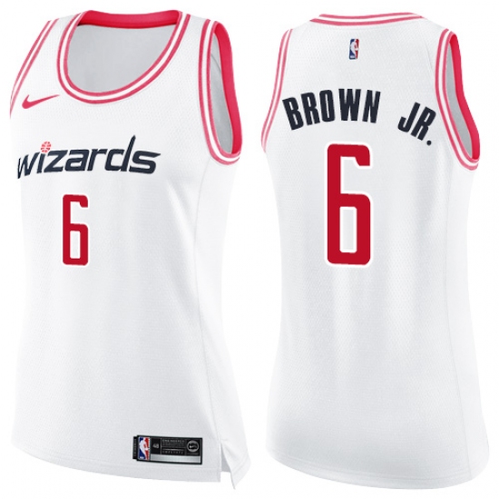 Women's Nike Washington Wizards #6 Troy Brown Jr. Swingman White Pink Fashion NBA Jersey