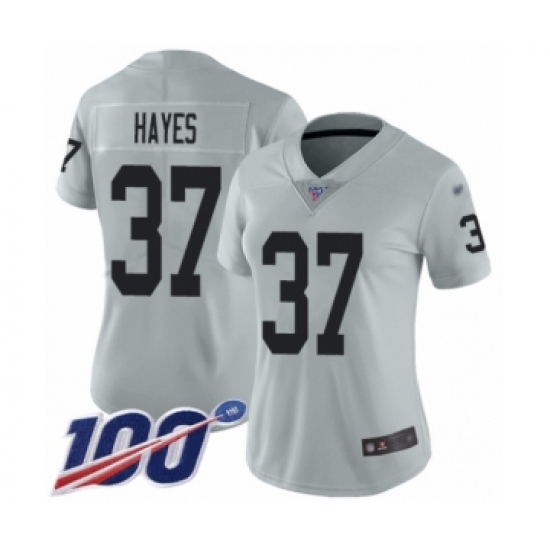 Women's Oakland Raiders #37 Lester Hayes Limited Silver Inverted Legend 100th Season Football Jersey