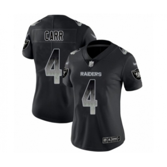 >Women's Oakland Raiders #4 Derek Carr Black Smoke Fashion Limited Player 100th Season Football Jersey