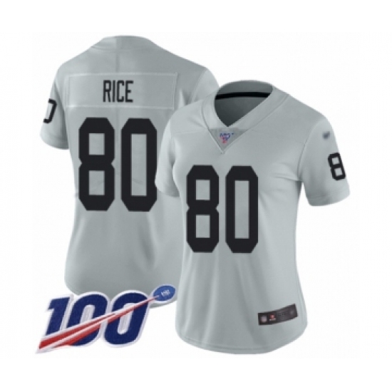 Women's Oakland Raiders #80 Jerry Rice Limited Silver Inverted Legend 100th Season Football Jersey