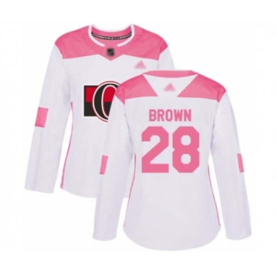 Women's Ottawa Senators #28 Connor Brown Authentic White Pink Fashion Hockey Jersey