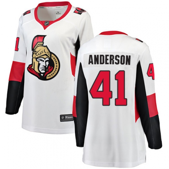 Women's Ottawa Senators #41 Craig Anderson Fanatics Branded White Away Breakaway NHL Jersey