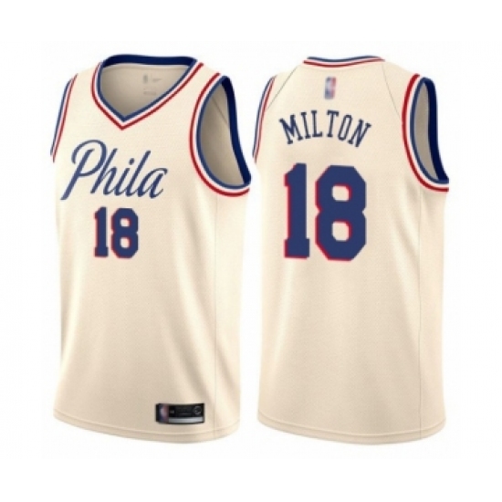 >Women's Philadelphia 76ers #18 Shake Milton Swingman Cream Basketball Jersey - City Edition