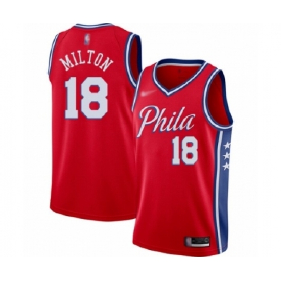 Men's Philadelphia 76ers #18 Shake Milton Authentic Red Finished Basketball Jersey - Statement Edition