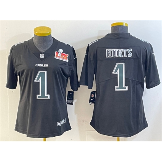 Women Philadelphia Eagles Jalen Hurts #1 Black 2024 2025 Super Bowl LIX F U S E Stitched NFL Jersey
