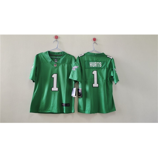 >Women's Philadelphia Eagles #1 Jalen Hurts Kelly Green Vapor Stitched Jersey(Run Small)