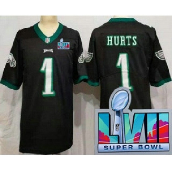 Women's Philadelphia Eagles #1 Jalen Hurts Limited Black Super Bowl LVII Vapor Jersey
