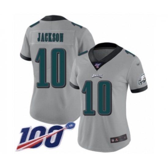 >Women's Philadelphia Eagles #10 DeSean Jackson Limited Silver Inverted Legend 100th Season Football Jersey