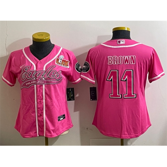 Women's Philadelphia Eagles #11 A.J. Brown Pink 2025 Super Bowl LIX Cool Base Stitched Baseball Jersey(Run Small)