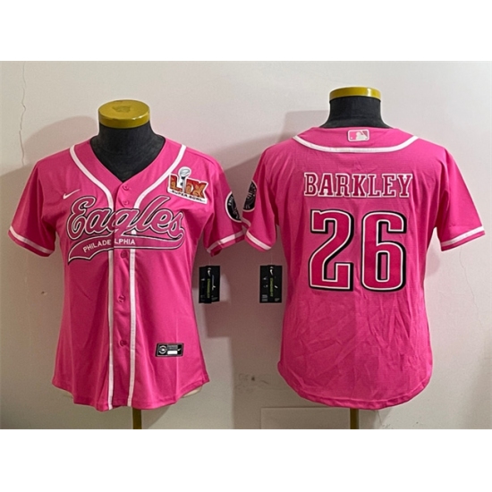 Women's Philadelphia Eagles #26 Saquon Barkley Pink 2025 Super Bowl LIX Cool Base Stitched Baseball Jersey(Run Small)