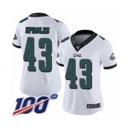 Women's Philadelphia Eagles #43 Darren Sproles White Vapor Untouchable Limited Player 100th Season Football Jersey