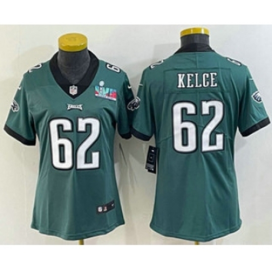 >Women's Philadelphia Eagles #62 Jason Kelce Limited Green Super Bowl LVII Vapor Jersey