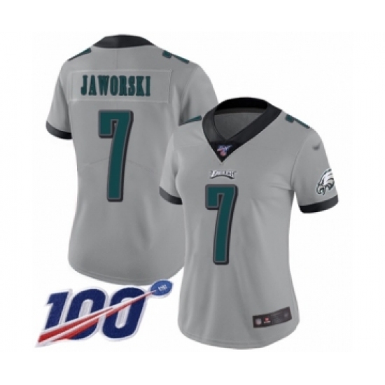 >Women's Philadelphia Eagles #7 Ron Jaworski Limited Silver Inverted Legend 100th Season Football Jersey