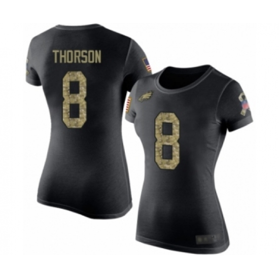>Women's Philadelphia Eagles #8 Clayton Thorson Black Camo Salute to Service T-Shirt
