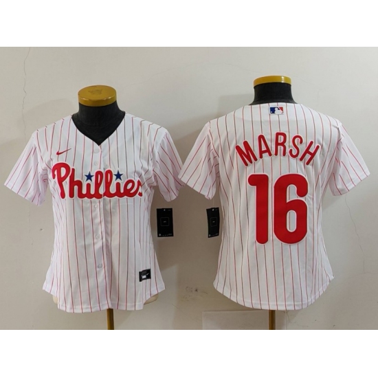 Women's Philadelphia Phillies #16 Brandon Marsh White Pinstripe Stitched Cool Base Jersey