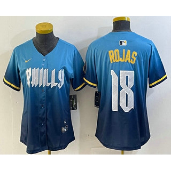 >Women's Philadelphia Phillies #18 Johan Rojas Blue 2024 City Connect Limited Stitched Jersey