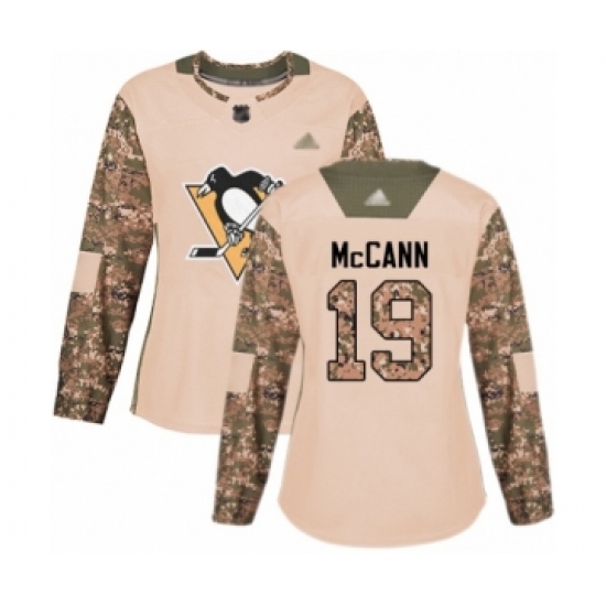 >Women's Pittsburgh Penguins #19 Jared McCann Authentic Camo Veterans Day Practice Hockey Jersey