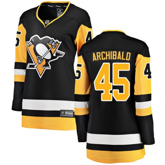 Home>NHL>Pittsburgh Penguins>Josh Archibald>Women's Pittsburgh Penguins #45 Josh Archibald Fanatics Branded Black Home Breakaway NHL Jersey