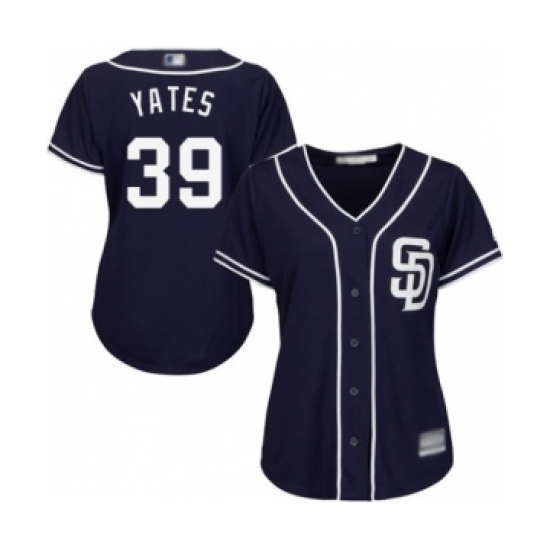 >Women's San Diego Padres #39 Kirby Yates Authentic Navy Blue Alternate 1 Cool Base Baseball Jersey