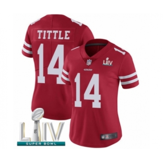 Women's San Francisco 49ers #14 Y.A. Tittle Red Team Color Vapor Untouchable Limited Player Super Bowl LIV Bound Football Jersey