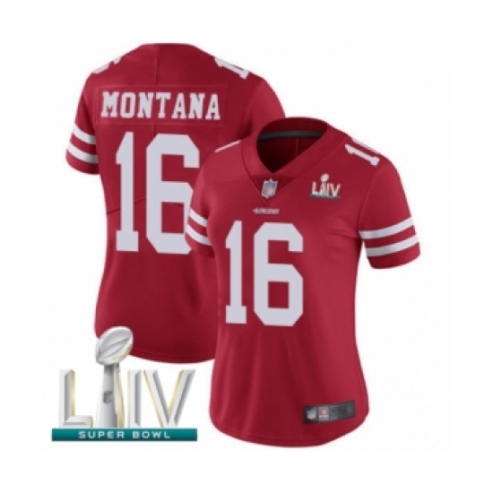 Women's San Francisco 49ers #16 Joe Montana Red Team Color Vapor Untouchable Limited Player Super Bowl LIV Bound Football Jersey