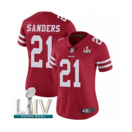 >Women's San Francisco 49ers #21 Deion Sanders Red Team Color Vapor Untouchable Limited Player Super Bowl LIV Bound Football Jersey