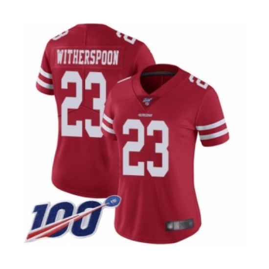 >Women's San Francisco 49ers #23 Ahkello Witherspoon Red Team Color Vapor Untouchable Limited Player 100th Season Football Jersey