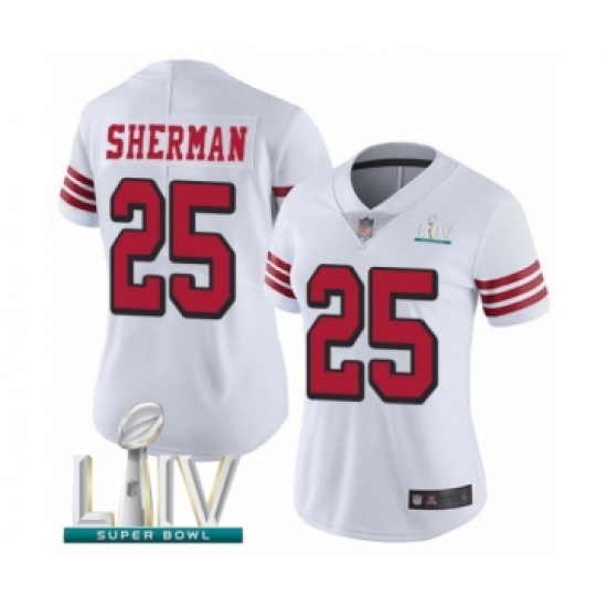 >Women's San Francisco 49ers #25 Richard Sherman Limited White Rush Vapor Untouchable Super Bowl LIV Bound Football Jersey