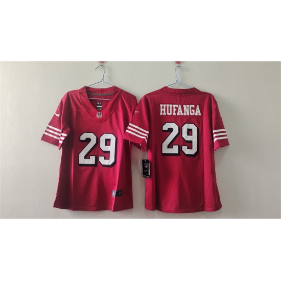 >Women's San Francisco 49ers #29 Talanoa Hufanga Red Alternate Vapor Football Stitched Jersey(Run Small)