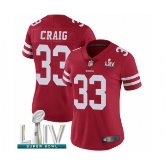Women's San Francisco 49ers #33 Roger Craig Red Team Color Vapor Untouchable Limited Player Super Bowl LIV Bound Football Jersey