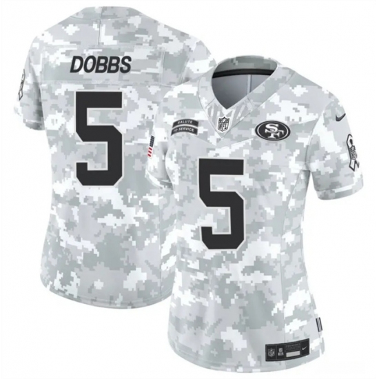 >Women's San Francisco 49ers #5 Joshua Dobbs 2024 F.U.S.E Arctic Camo Salute To Service Limited Stitched Jersey(Run Small)
