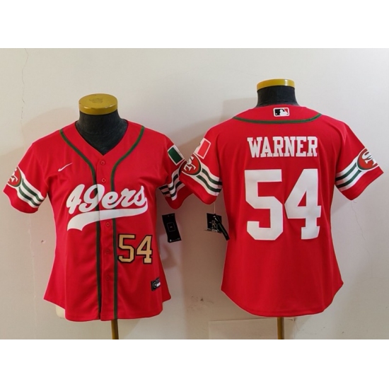 >Women's San Francisco 49ers #54 Fred Warner Red Mexico Cool Base Stitched Baseball Jerseys