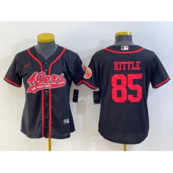 >Women's San Francisco 49ers #85 George Kittle Black With Patch Cool Base Stitched Baseball Jersey