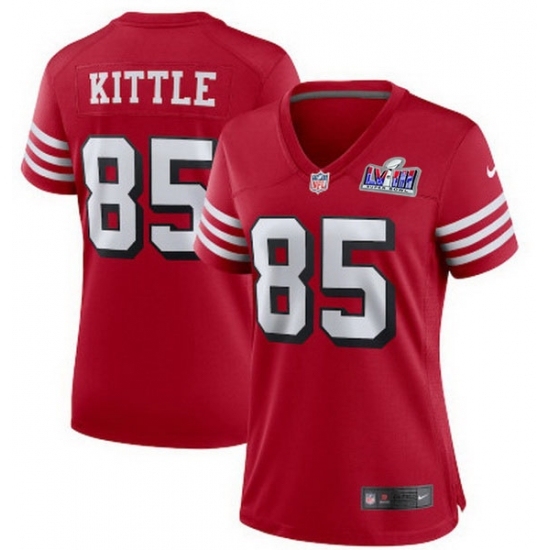 >Women's San Francisco 49ers #85 George Kittle New Red 2023 F U S E Vapor Untouchable Limited Stitched Football 2024 Super Bowl LVIII Jersey