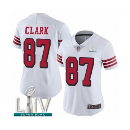 >Women's San Francisco 49ers #87 Dwight Clark Limited White Rush Vapor Untouchable Super Bowl LIV Bound Football Jersey