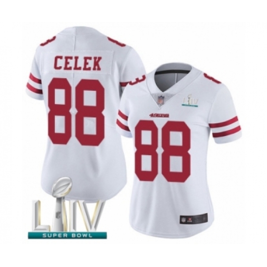 Women's San Francisco 49ers #88 Garrett Celek White Vapor Untouchable Limited Player Super Bowl LIV Bound Football Jersey
