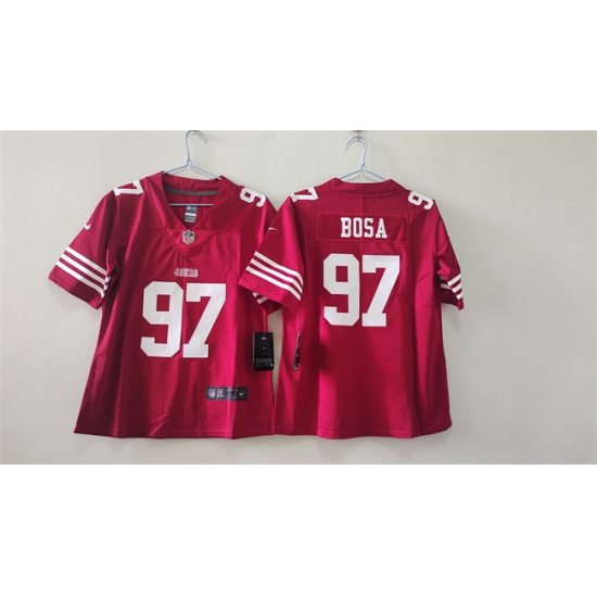 >Women's San Francisco 49ers #97 Nick Bosa Red Vapor Football Stitched Jersey(Run Small)