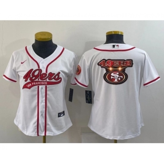 >Women's San Francisco 49ers White Team Big Logo With Patch Cool Base Stitched Baseball Jersey