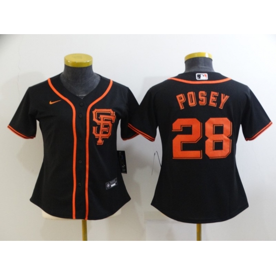 >Women's San Francisco Giants #28 Buster Posey Authentic Black Alternate Jersey