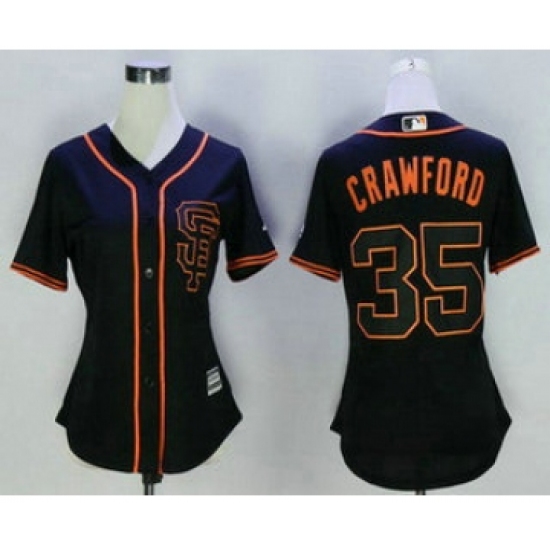Women's San Francisco Giants #35 Brandon Crawford Black SF Cool Base Baseball Jersey