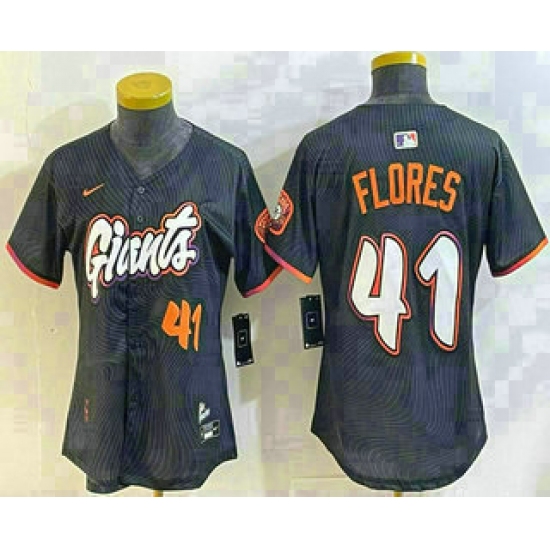 >Women's San Francisco Giants #41 Wilmer Flores Number Black 2025 City Connect Limited Stitched Jersey