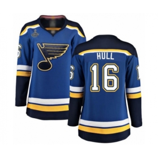 >Women's St. Louis Blues #16 Brett Hull Fanatics Branded Royal Blue Home Breakaway 2019 Stanley Cup Champions Hockey Jersey